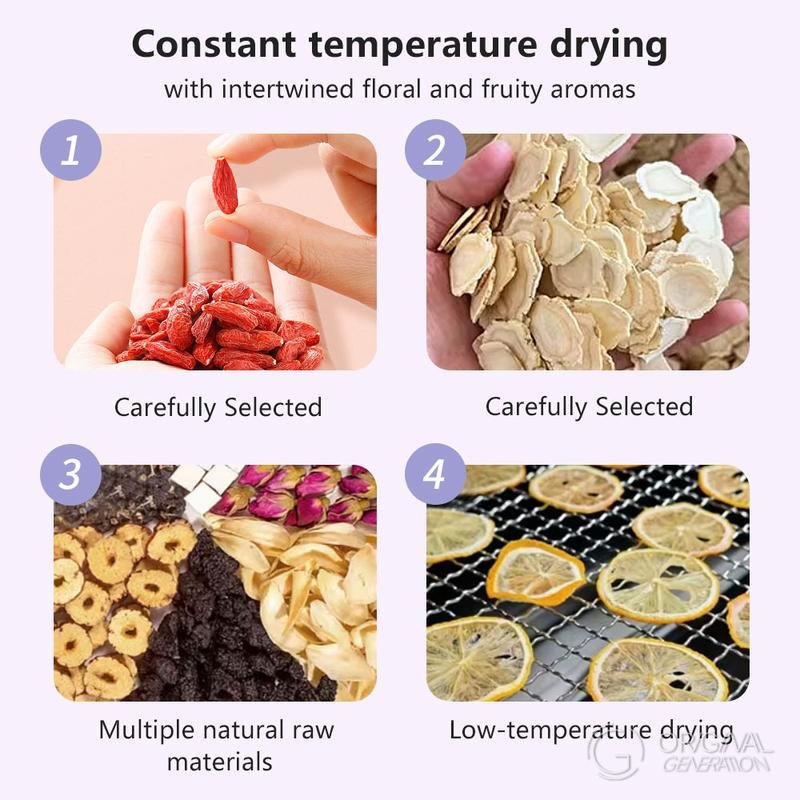 Indulge in the perfectly balanced experience of our exquisite Day & Night Flower Fruit Tea, a luxurious herbal fruit tea designed to harmonize your mind and body. This healthy fruit tea offers a revitalizing morning and a serene evening, embracing the essence of natural wellness.